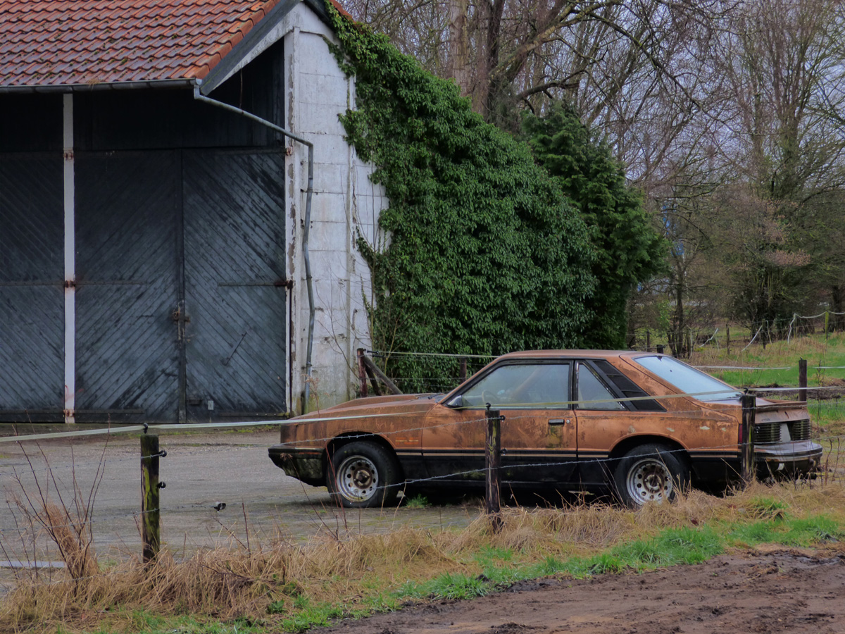 Deze Mustang staat al jaren te verpauperen op een verlaten terrein