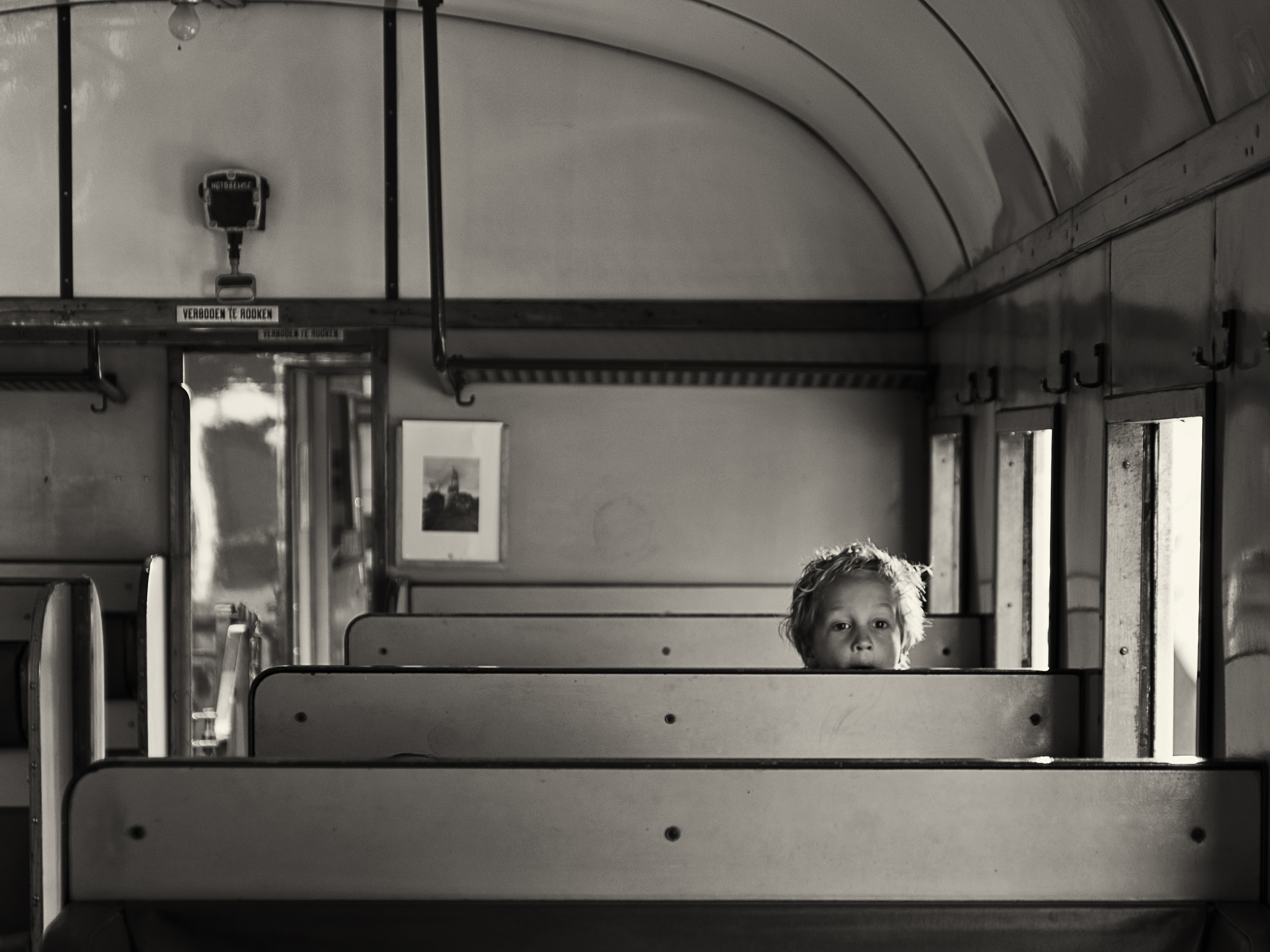Jongetje "gesnapt" in oude treinwagon.