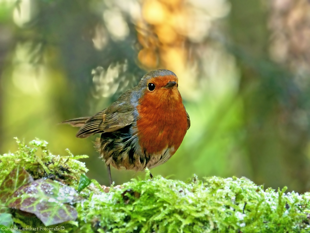 Roodborstje met sneeuw. (Aprilletje zoet....).