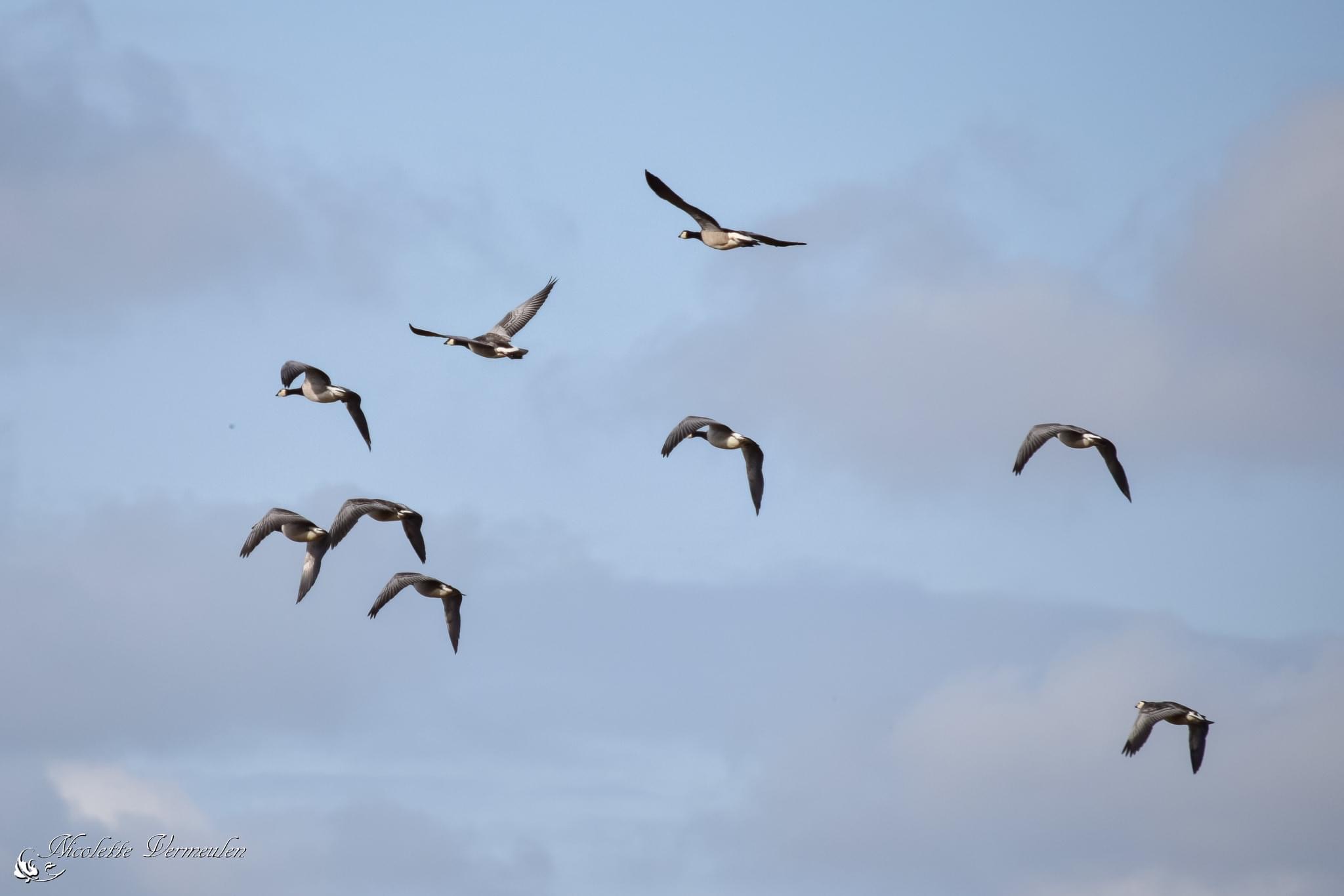 Vliegende brandganzen boven Schouwen-Duiveland.