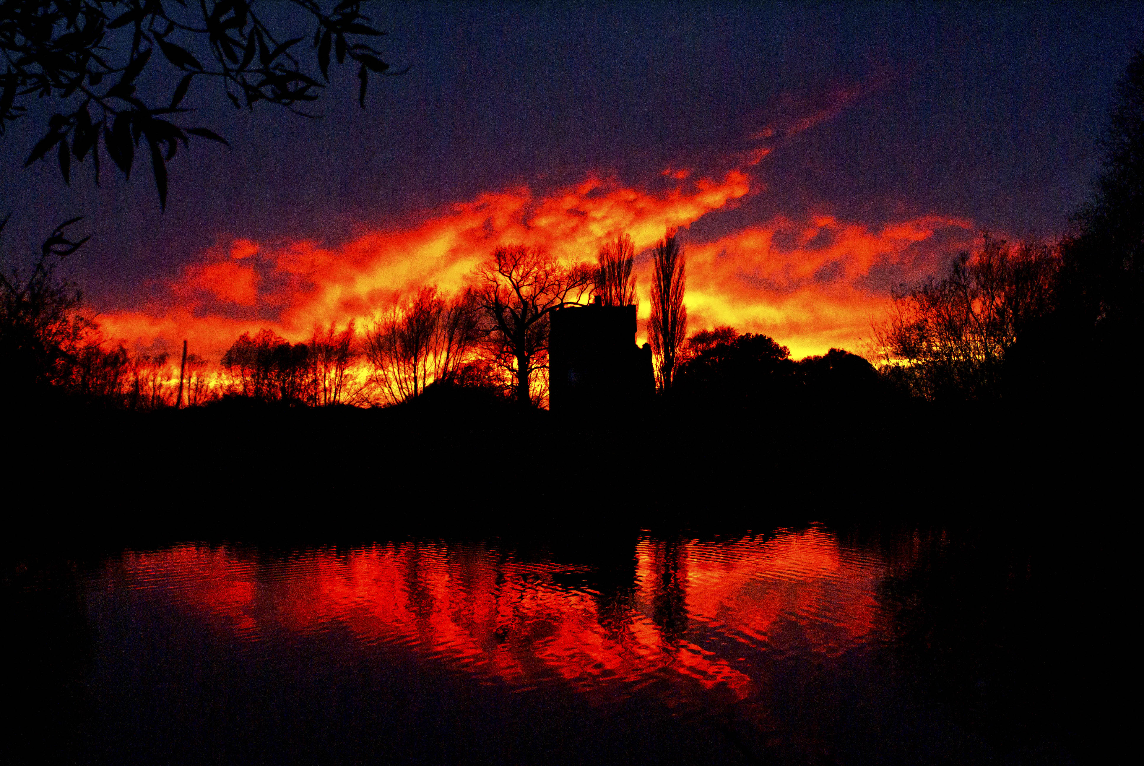 Vurige zonsondergang bij slot Nijenbeek te Voorst