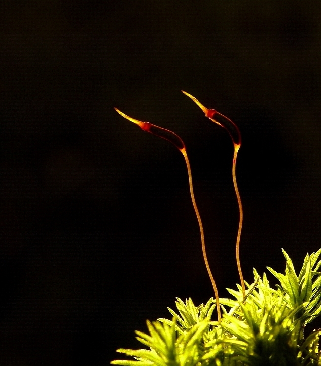 Mosjes gefotografeerd met tegenlicht tegen een schaduwrijke achtergrond.