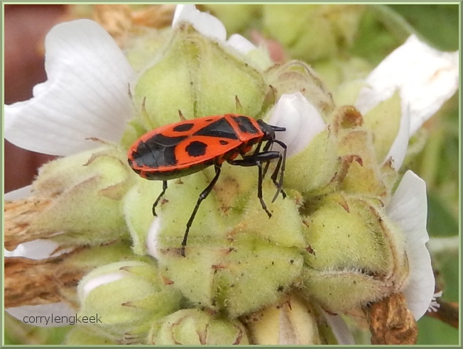 zuigt aan afgevallen zaden, valt ook andere insekten aan.
