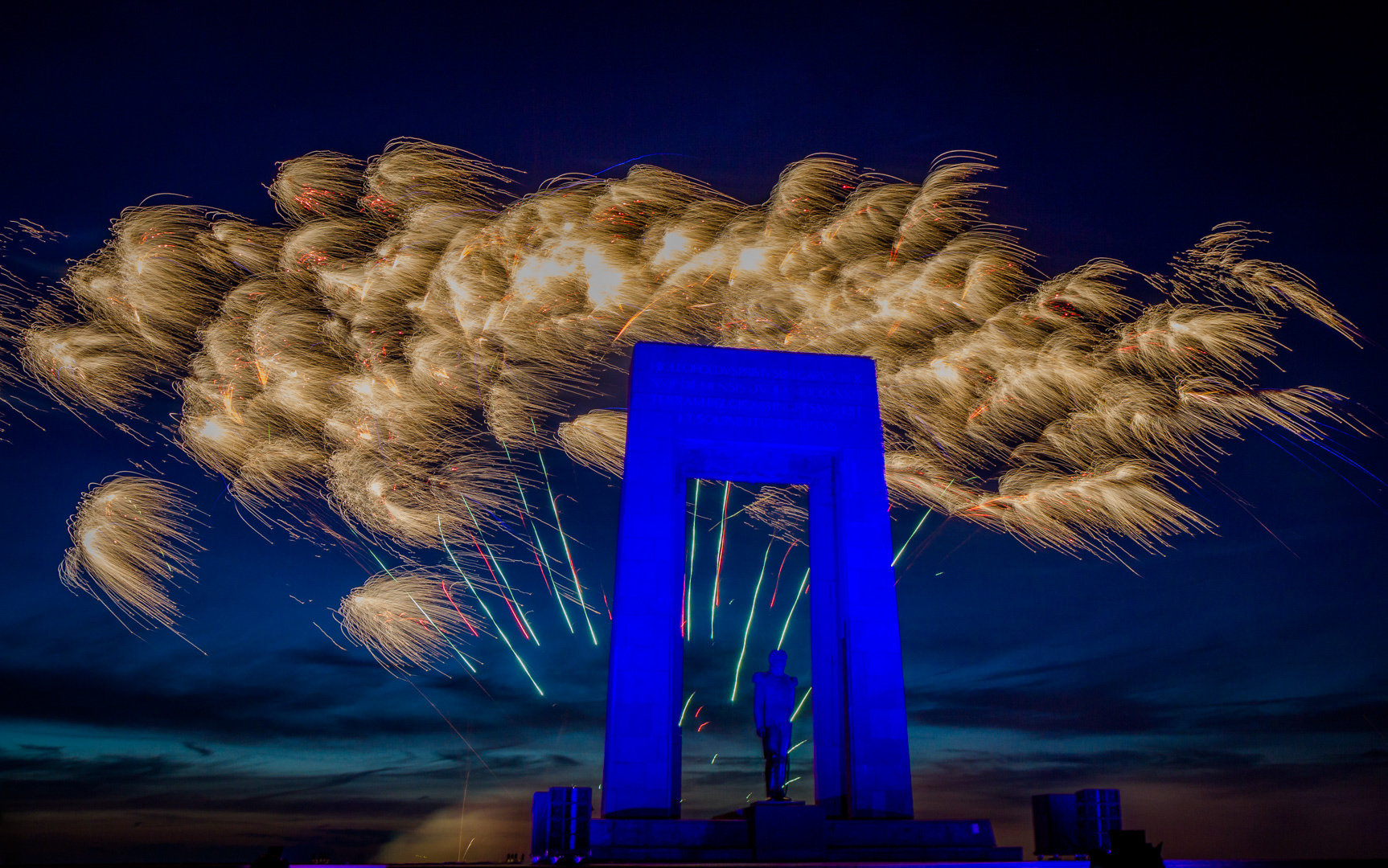 Vuurwerk op de vooravond van de Belgische Nationale feestdag (21 juli), aan het standbeeld van de eerste Belgische koning : Leopold I.