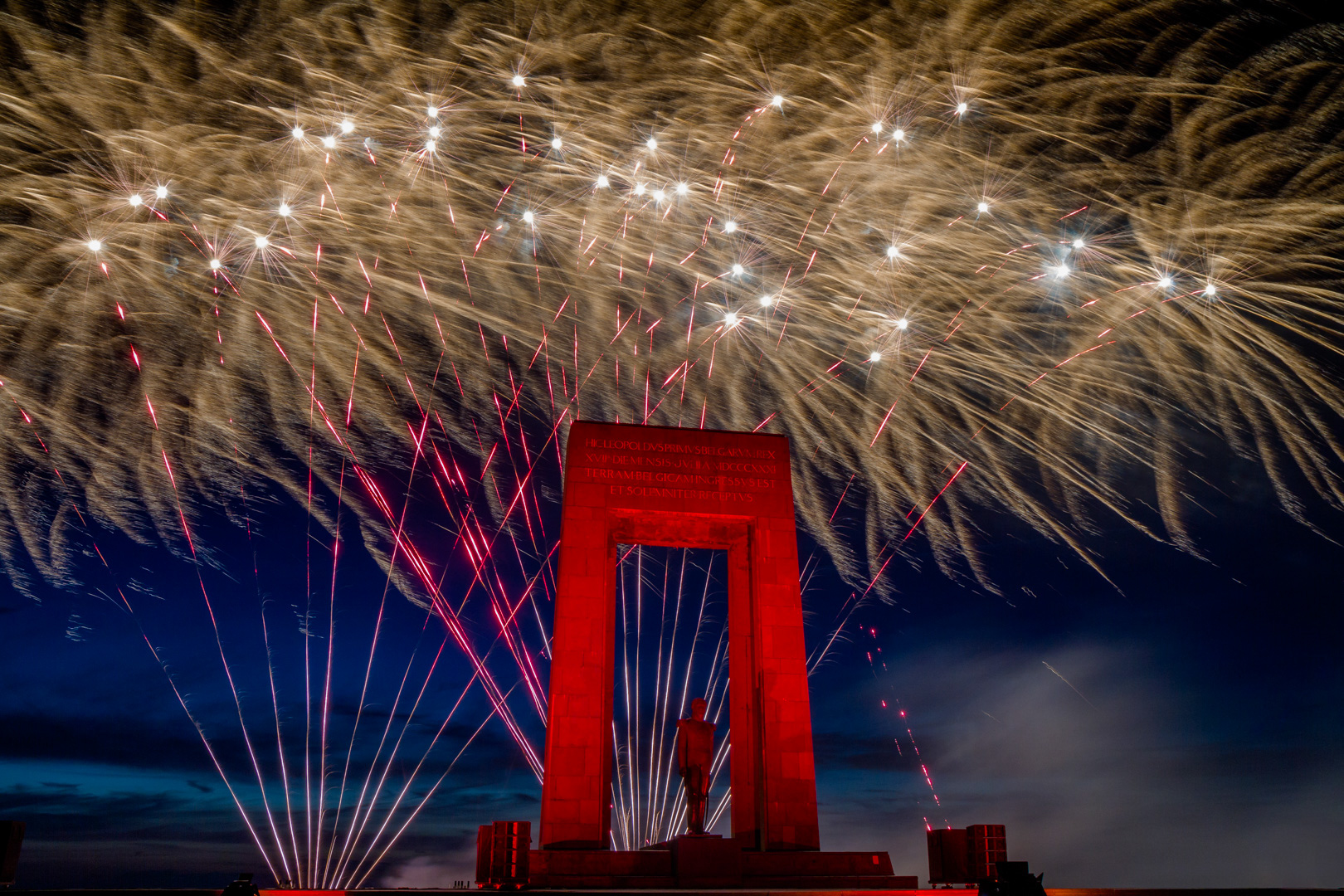 Vuurwerk aan de vooravond van de Belgische Nationale feestdag (21 juli), in de kustgemeente "de Panne" (B.)