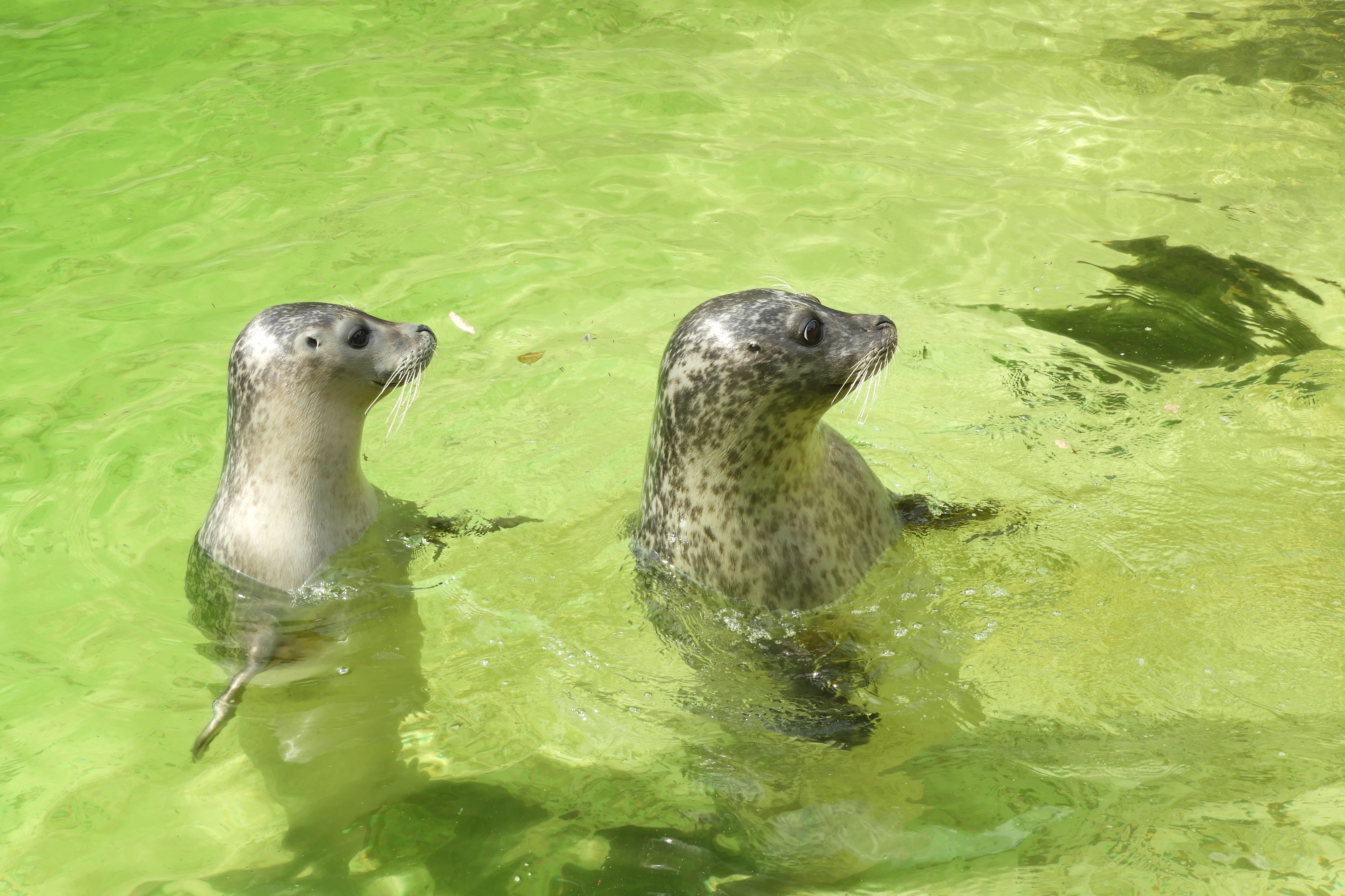 Deze zeehonden wachten op hun dagelijkse portie lekkere visjes.