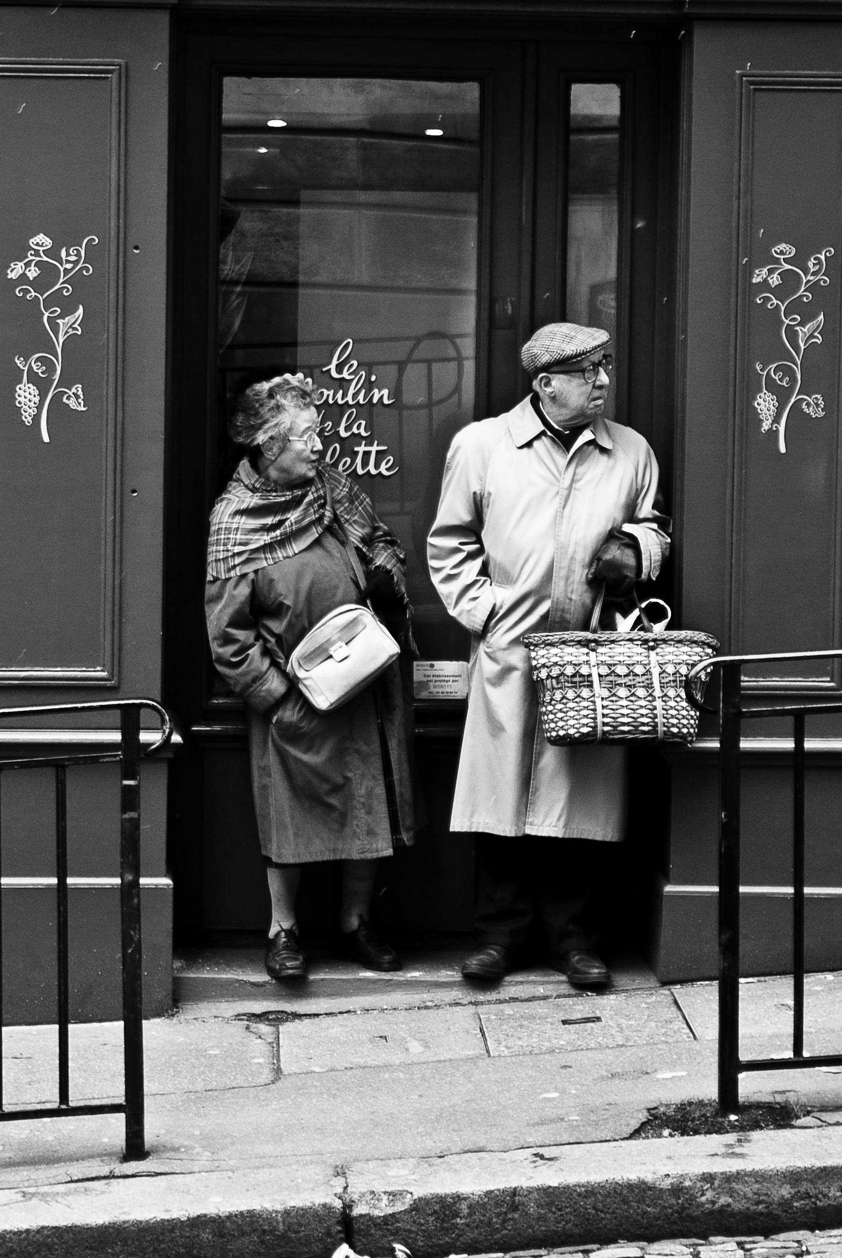 Mijn vriendin zag deze 2 oudere mensen nogal wat onhandig en vreemd staan in Parijs en zei gelijk die moet je fotograferen, na wat testen vond ik deze foto het mooist. Met de zwart - wit conversie heb ik geprobeerd er voor te zorgen dat dit een echte oude straat foto werd.
