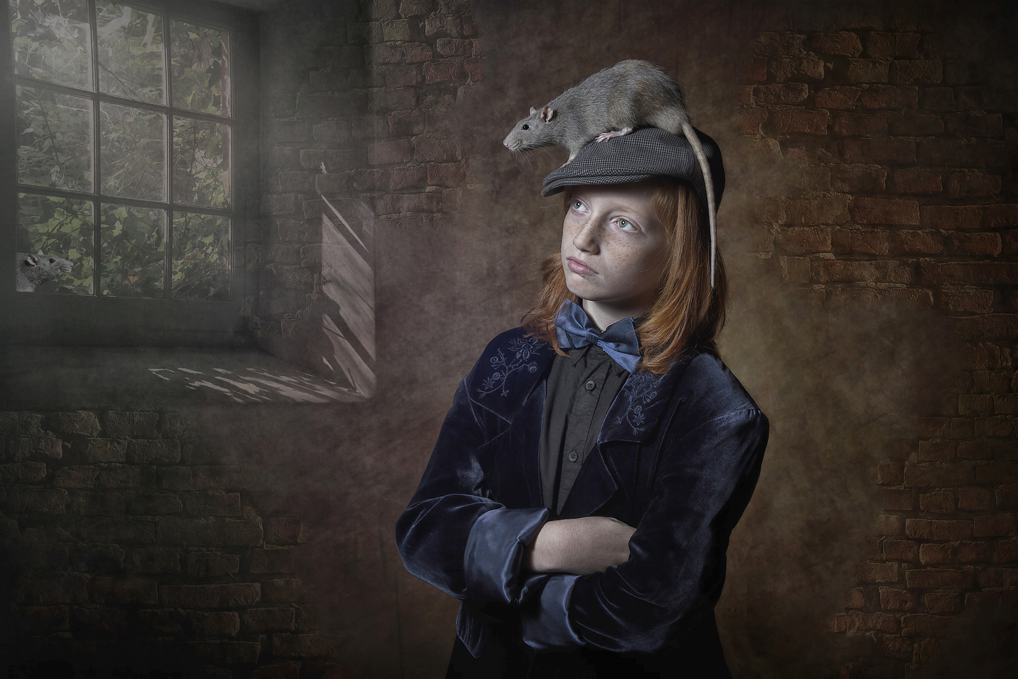 De rat op het hoofd van de jongen is echt