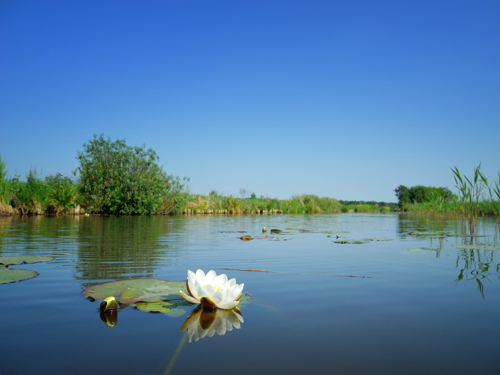 Waterlelie in Nationaal Park Weerribben-Wieden op een zonnige lente dag.