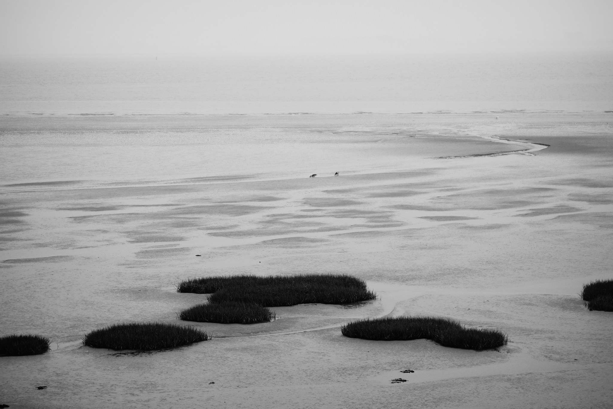 2 eenden flaneren aan de Westerschelde nabij Waarde, Zeeland.