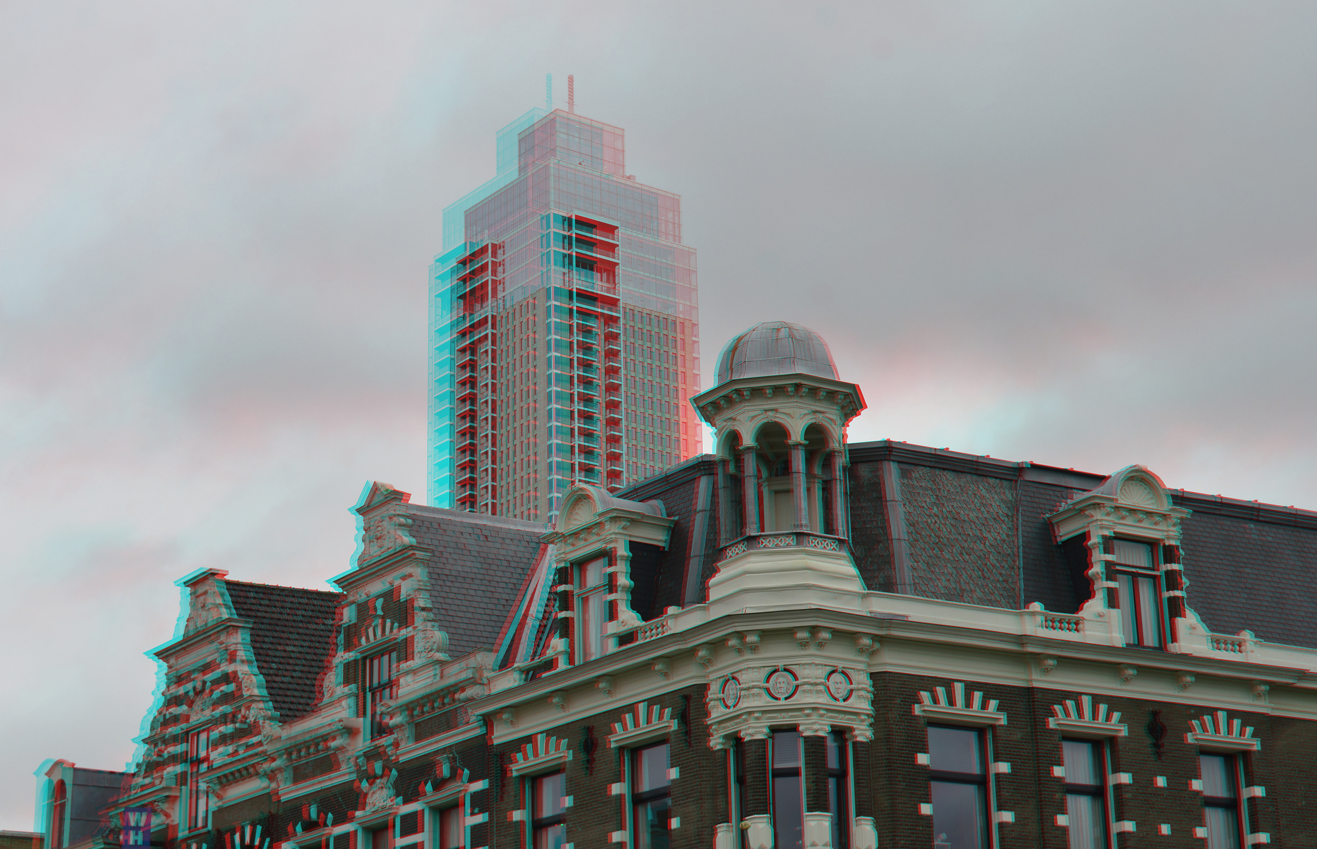 Westzeedijk met Zalmhaventoren Rotterdam 3D anaglyph