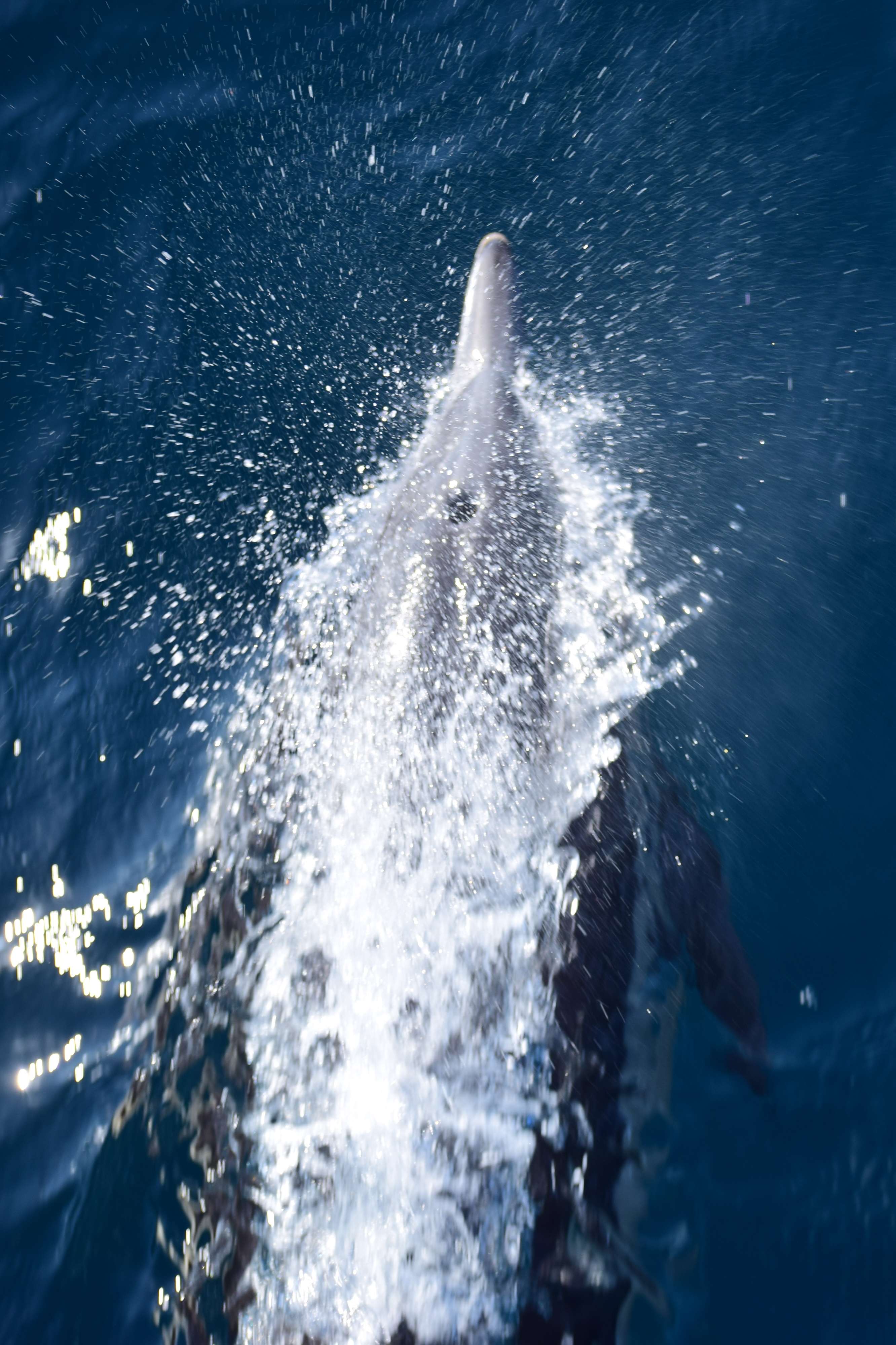 De dolfijn is een van de weinige diersoorten die plezier haalt uit contact met de mens. Ze maakten mooie sprongen voor de boot en gingen surfen op de golven achter de boot. Ik vroeg me af wie hier nu wie bekeek, de dolfijnen ons of wij de dolfijnen.