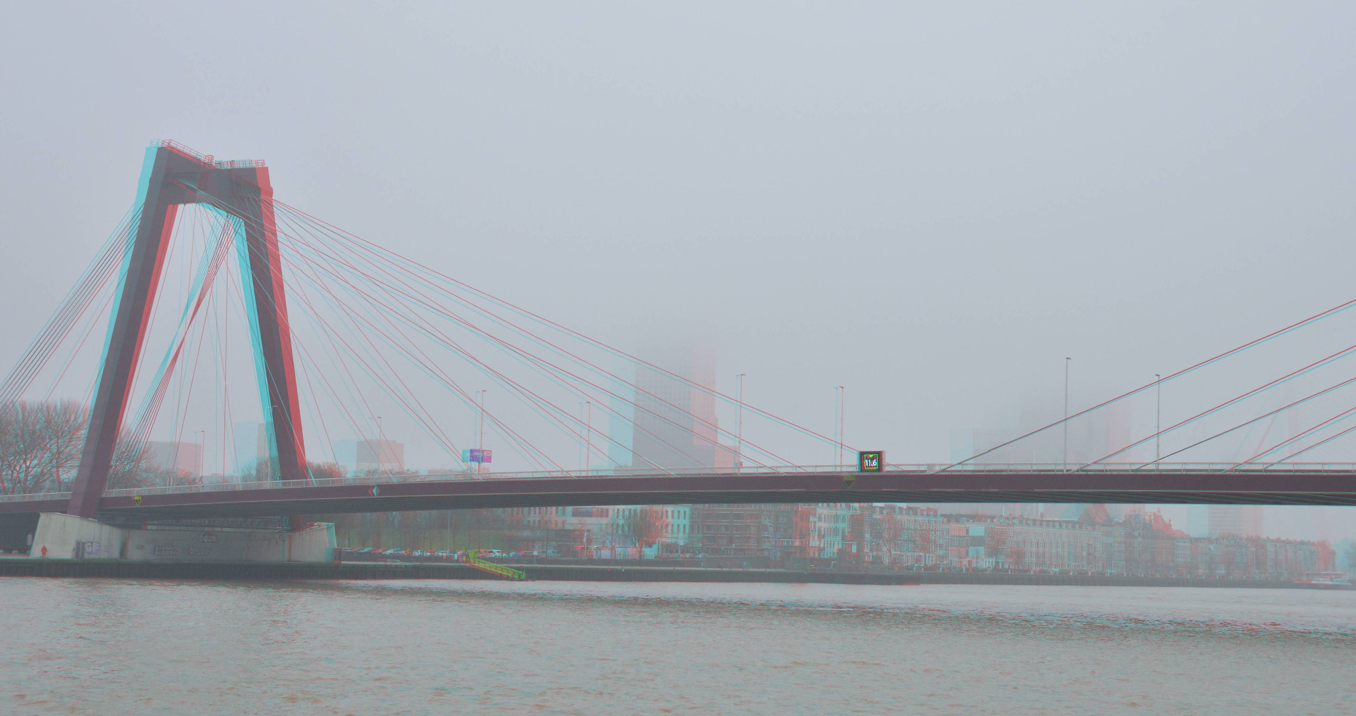 Willemsbrug in mist Rotterdam 3D