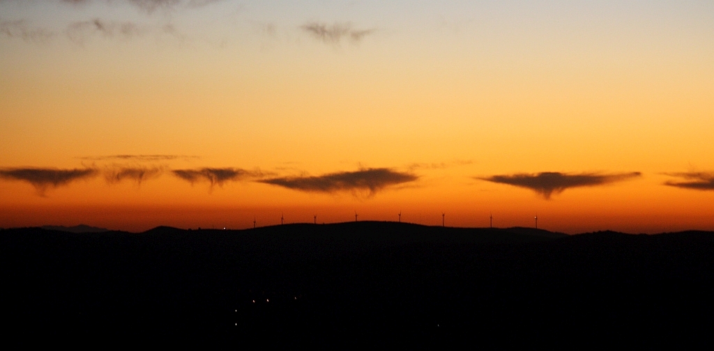 windmolens in laat avondlicht