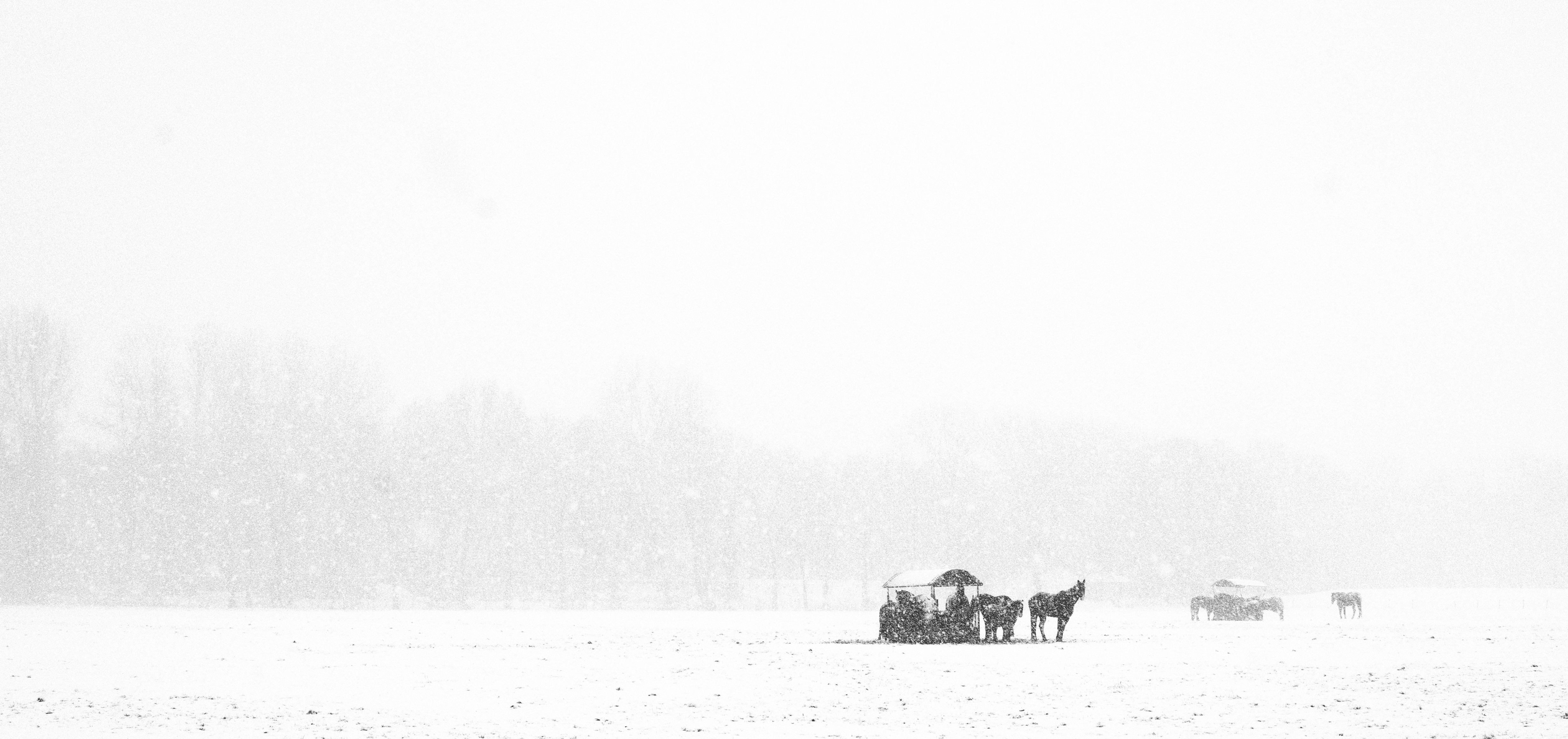 Genomen tijdens de hevige sneeuwstorm begin december. De paarden zochten schuil bij elkaar, dit geeft een mooi contrast tegen de witte sneeuw!