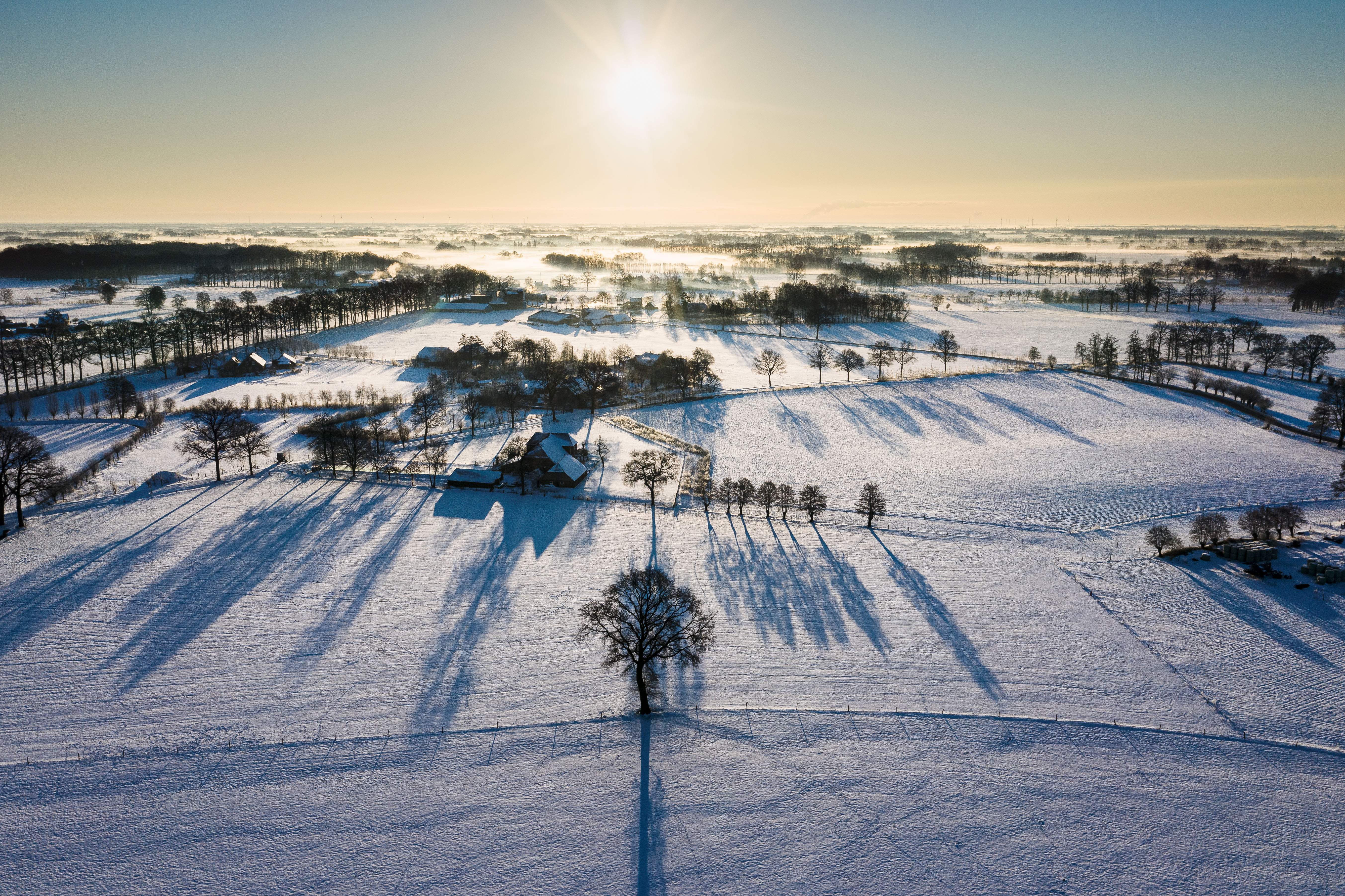 Afgelopen winter lag er bijna twee weken lang een dikke laag poeder sneeuw in het oosten van het land. Daarbij waren de ochtenden onveranderd wolkenloos. Het leverde prachtige mogelijkheden op om de schaduwen van de bomen te vangen in de sneeuw.