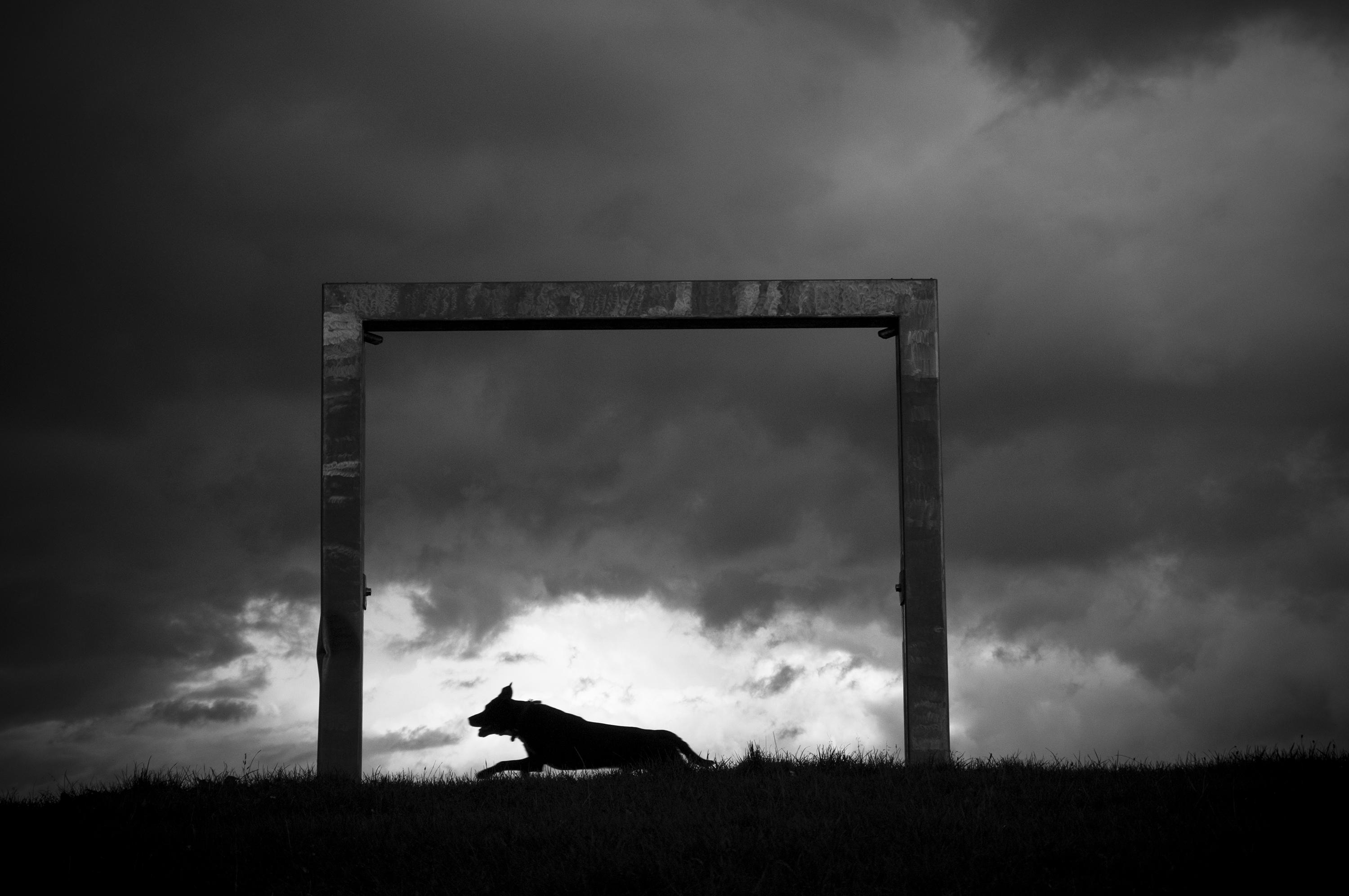 De schelde aan het Antwerpse Linkeroever , Perfecte locatie om tijdens een onweer te fotograferen , je hebt de vreemdste sferen en belichting . De hond die toevallig in beeld sprong maakte de mysterieuse weersomstandig heden compleet .