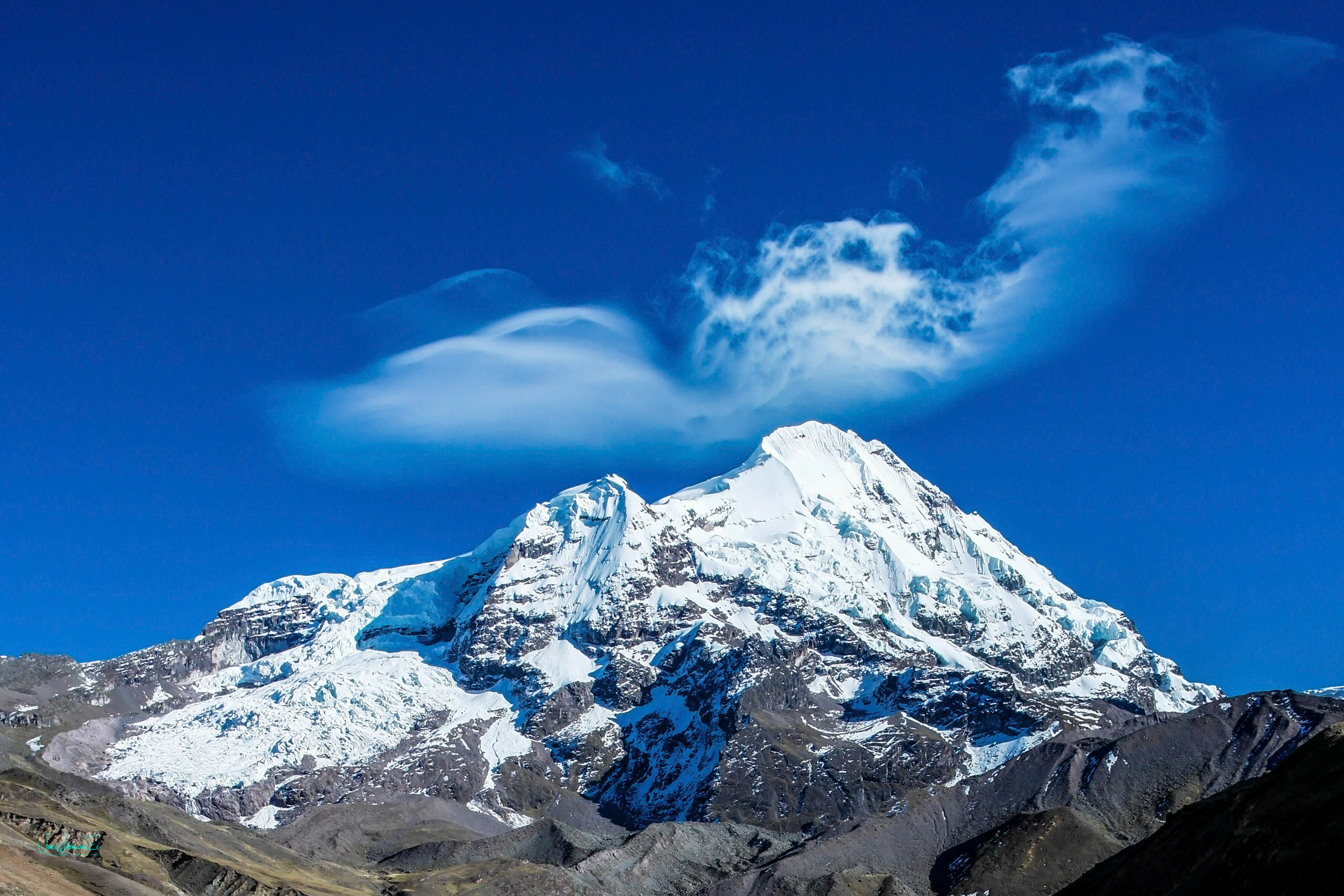 Wolk in de vorm van een lama foetus, in Peru een heel gunstig voorteken