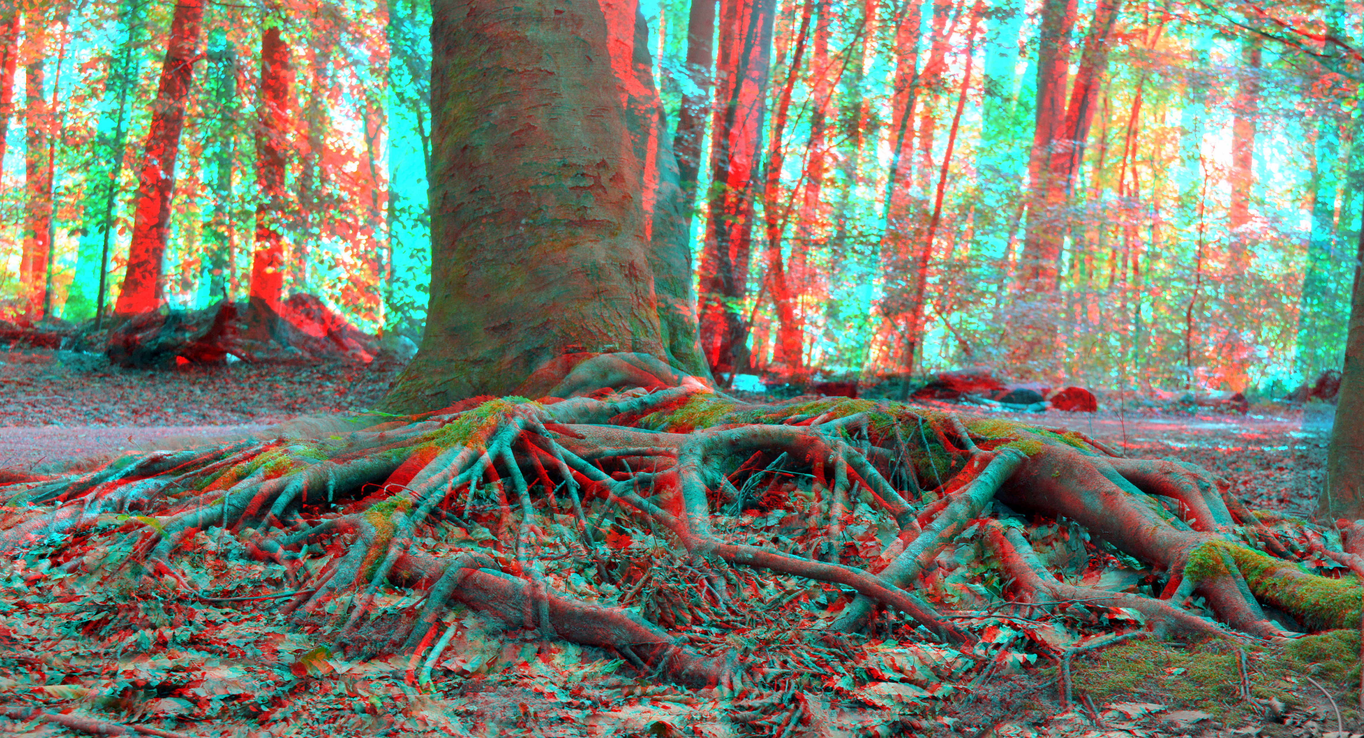 Wortels boom Kralingsebos Rotterdam 3D anaglyph