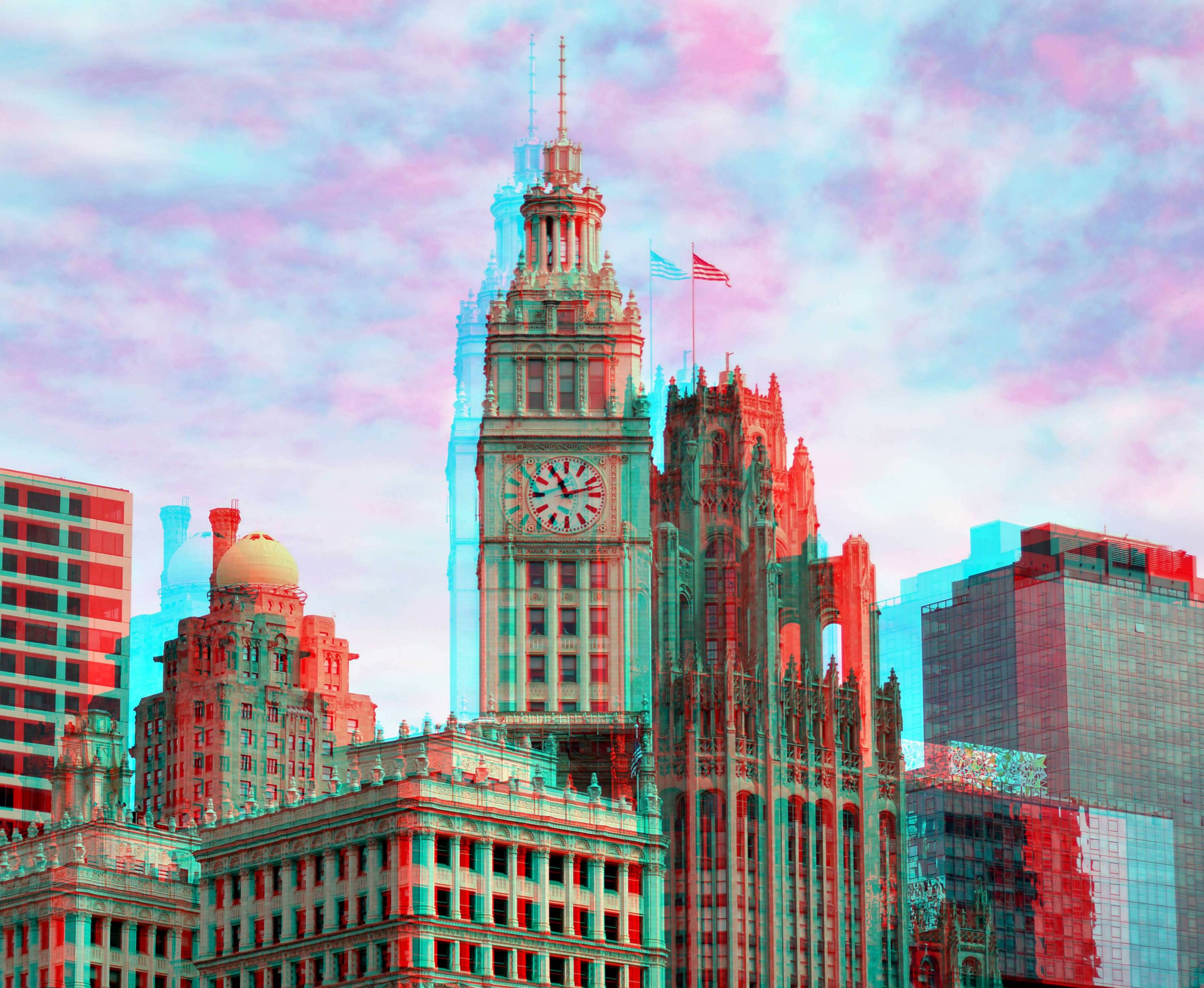 Wrigley building clock tower Chicago 3D