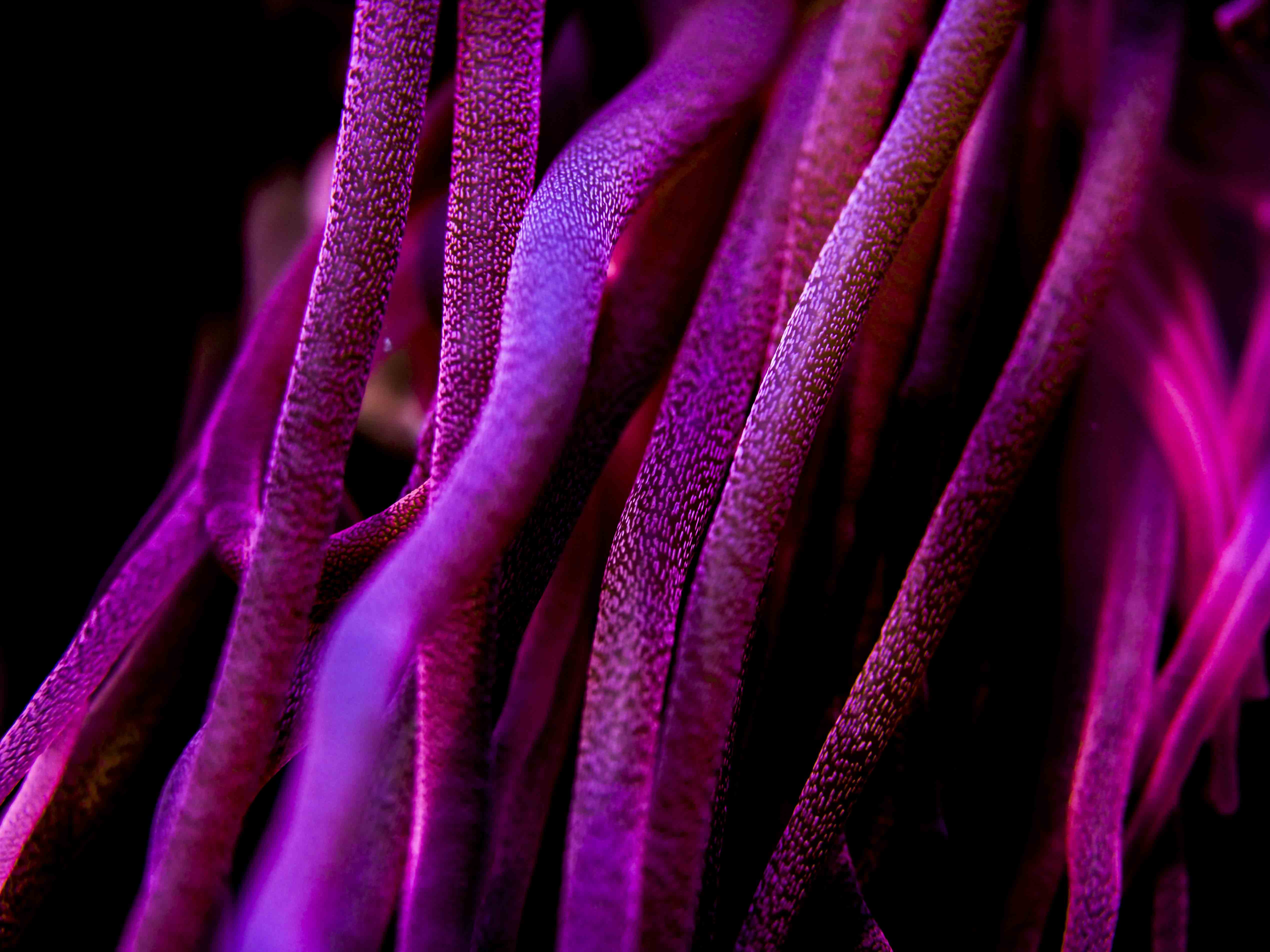 De verschillende licht invallen op de paarse zeeanemonen geven een mooi en bewogen gevoel