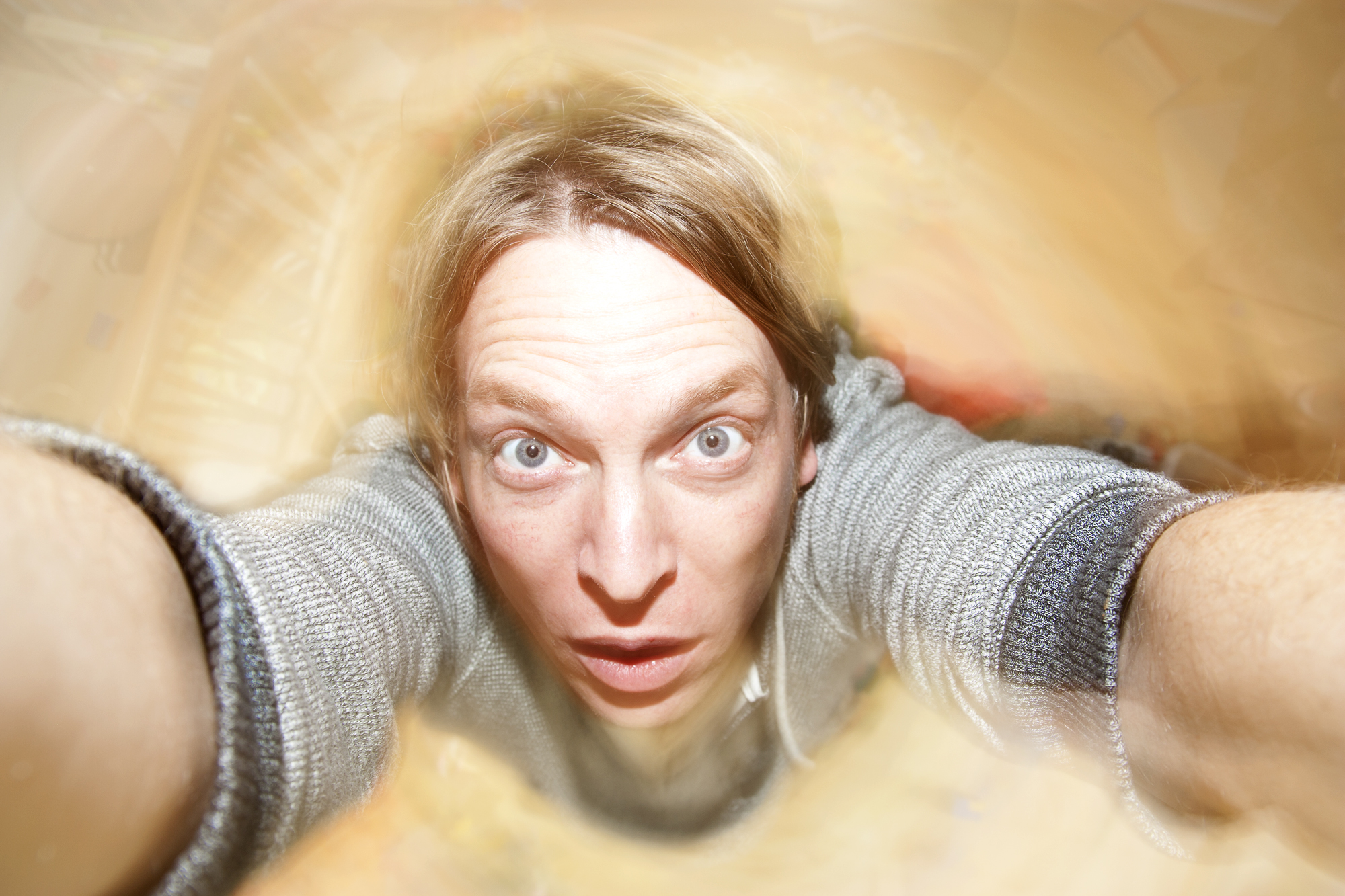 Lange sluitertijd, draaien, flits op het tweede gordijn.