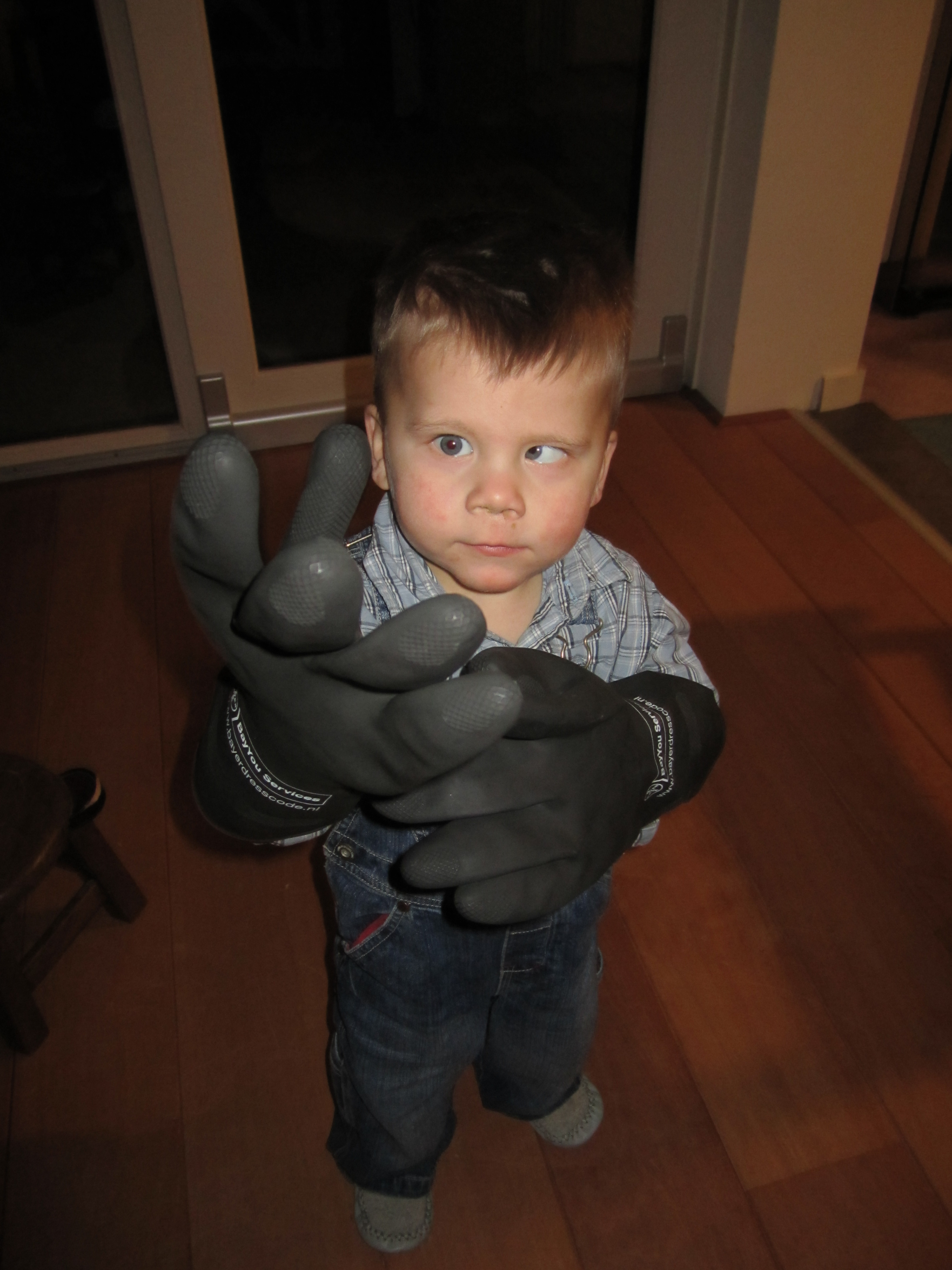 Dit jongetje heeft echt hele grote handschoenen aan, wat normaal altijd opvalt. Maar nu wordt je aandacht getrokken naar zijn gezicht waardoor dat grote detail (de handschoenen) totaal niet meer in beeld zijn. (overigens kijkt hij nu na de operatie mooi recht in de lens)