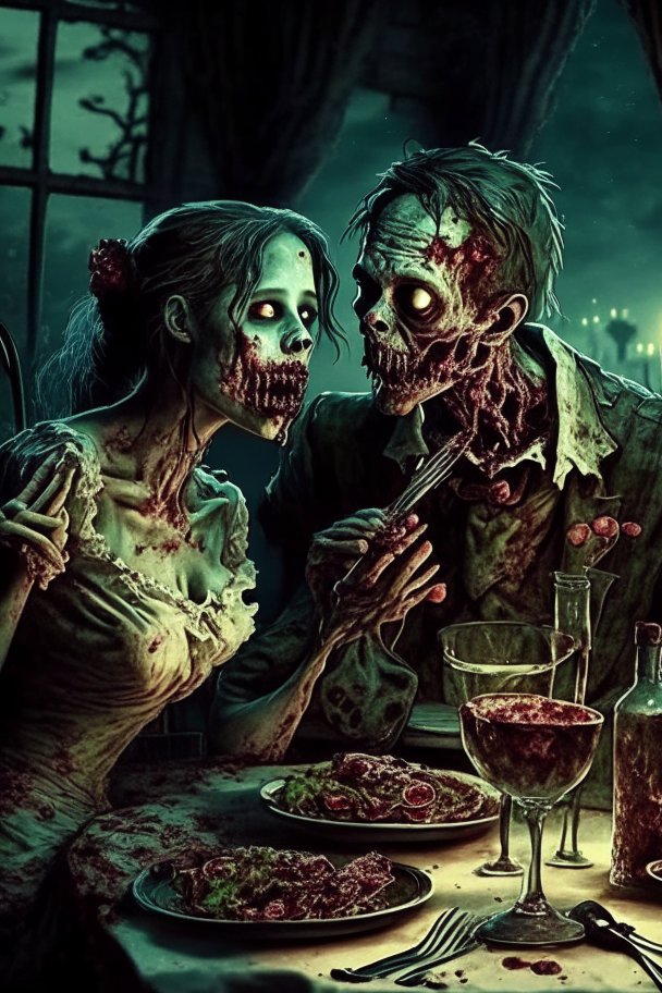 zombie couple having dinner.