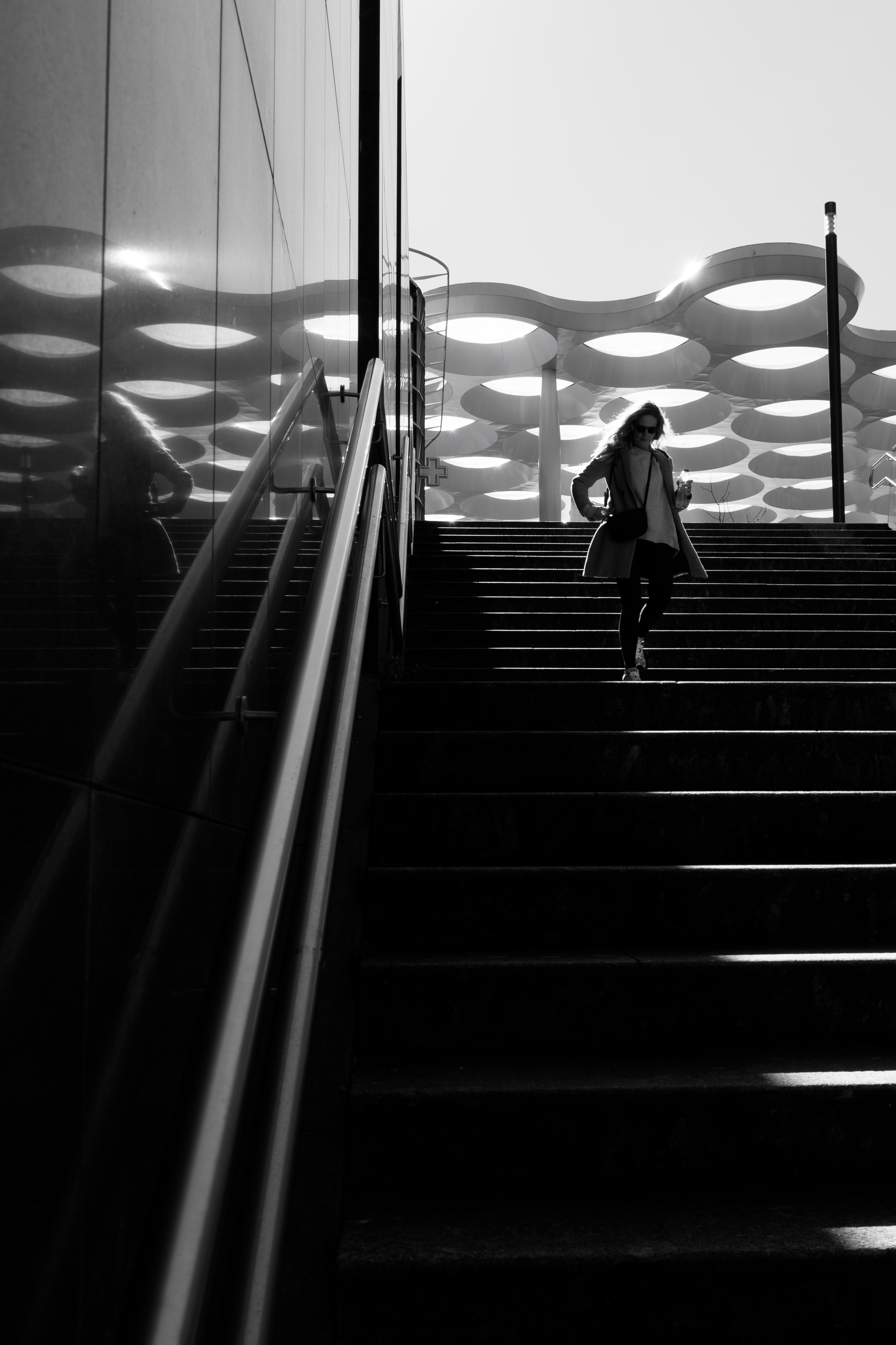 De zon verlicht de trappen van Utrecht CS