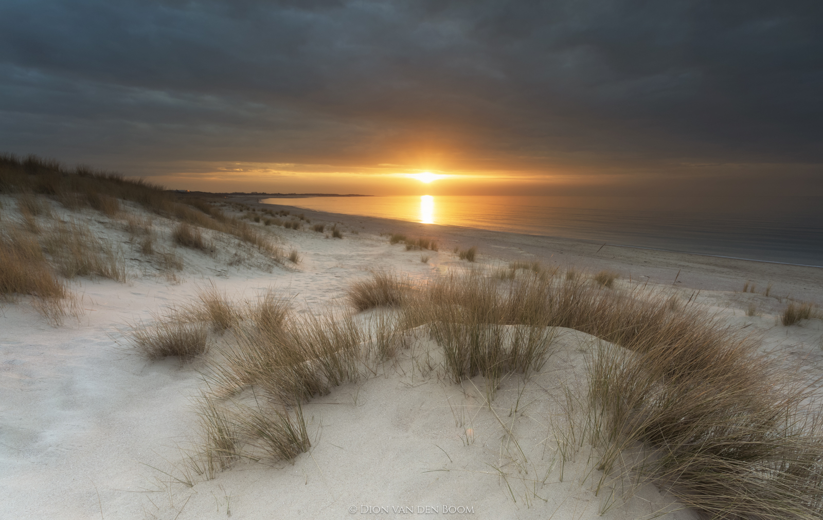Zonsondergang op het Banjaardstrand bij Kamperland. Bij aankomst zat het nog wat dicht, maar net voor de zon onderging gaf ze nog een hele dikke knipoog onder de wolken door.