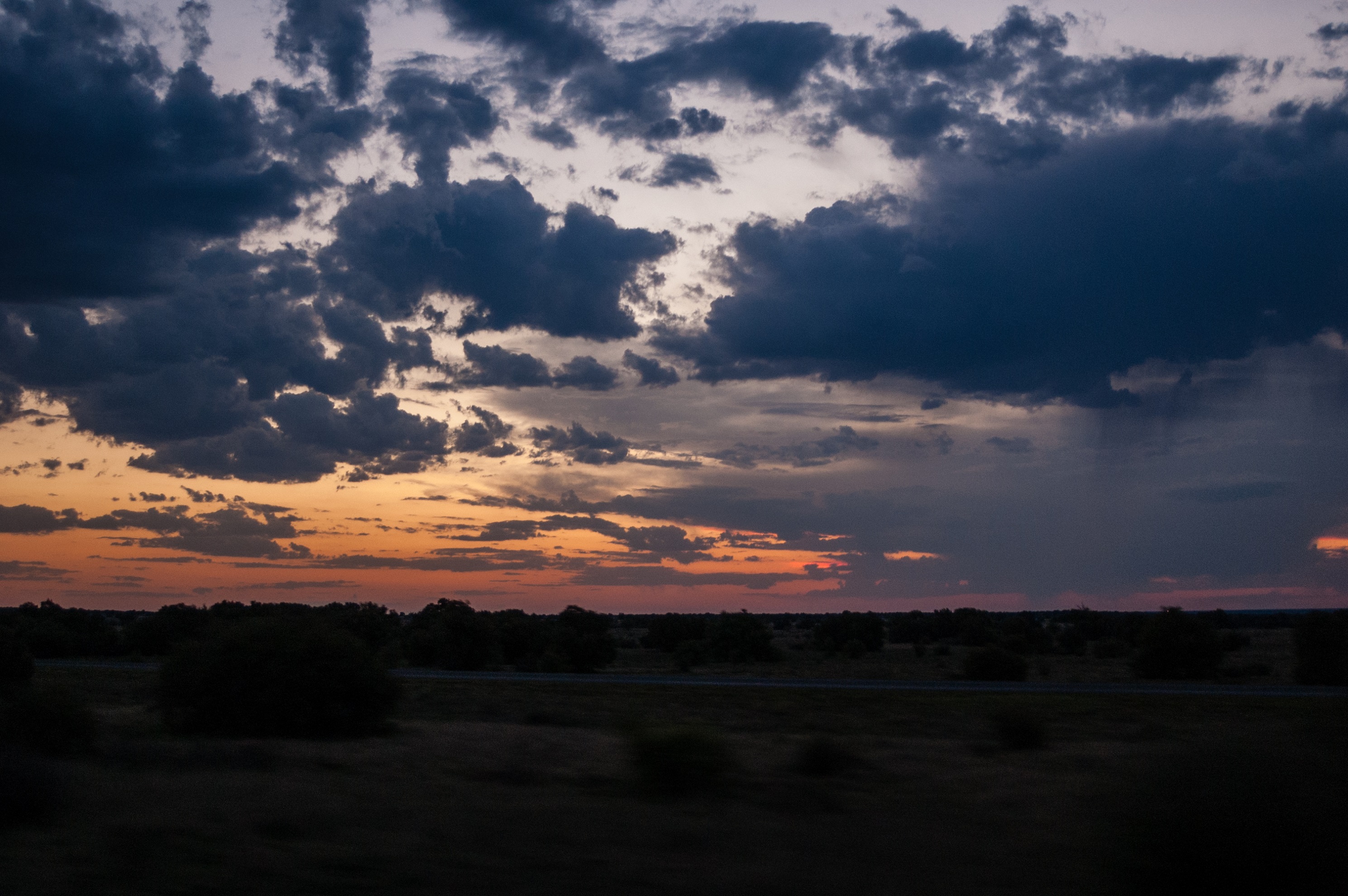 Zonsondergang in Zuid-Afrika, gezien vanuit de trein