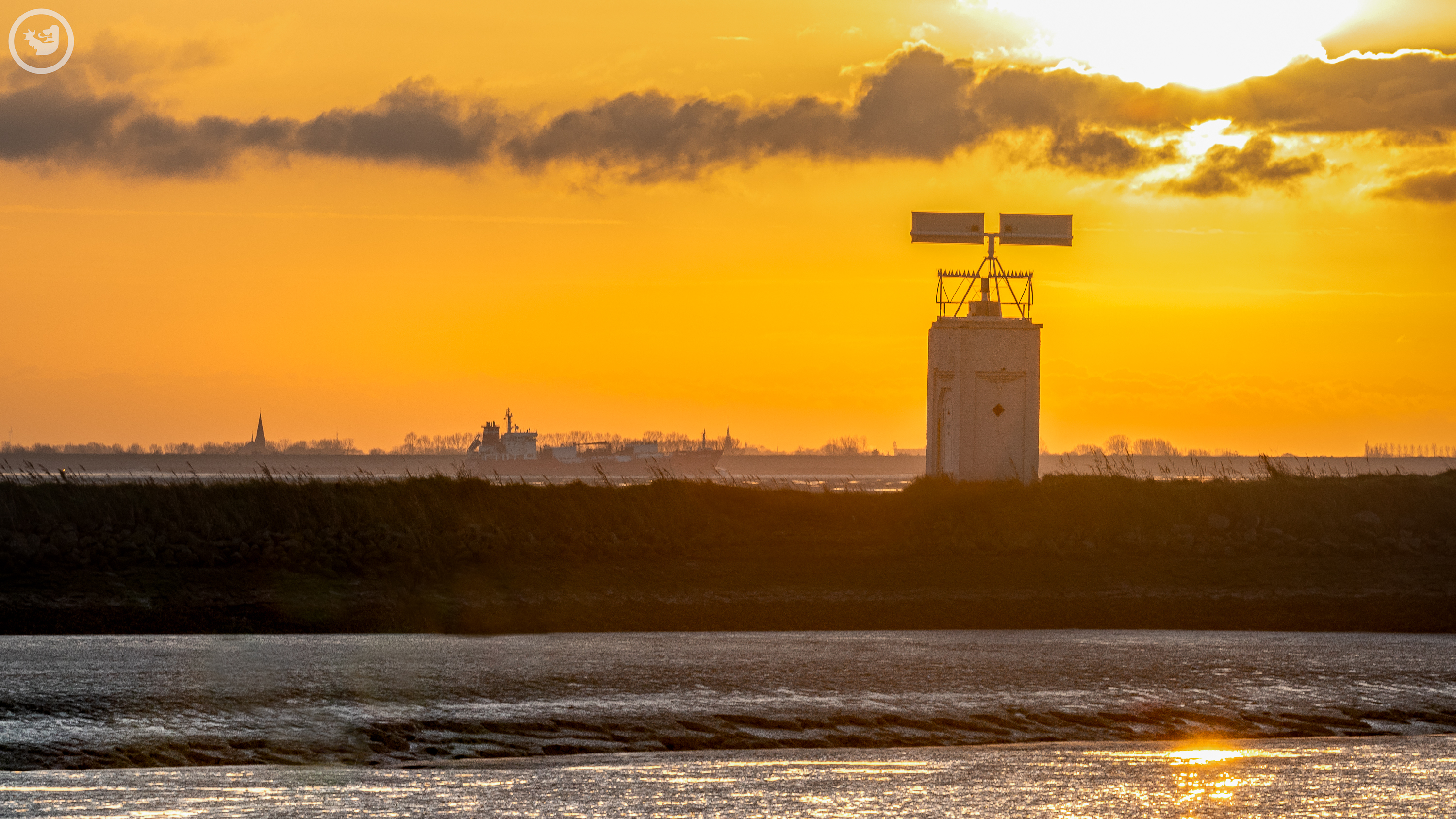 Een mooie zonsopkomst aan de Westerschelde bij getijdenhaven de Val / voormalige veerhaven in Hoedekenskerke. Achter het havenlicht van Hoedekenskerke zijn de Zeeuws-Vlaamse dorpjes goed te zien.