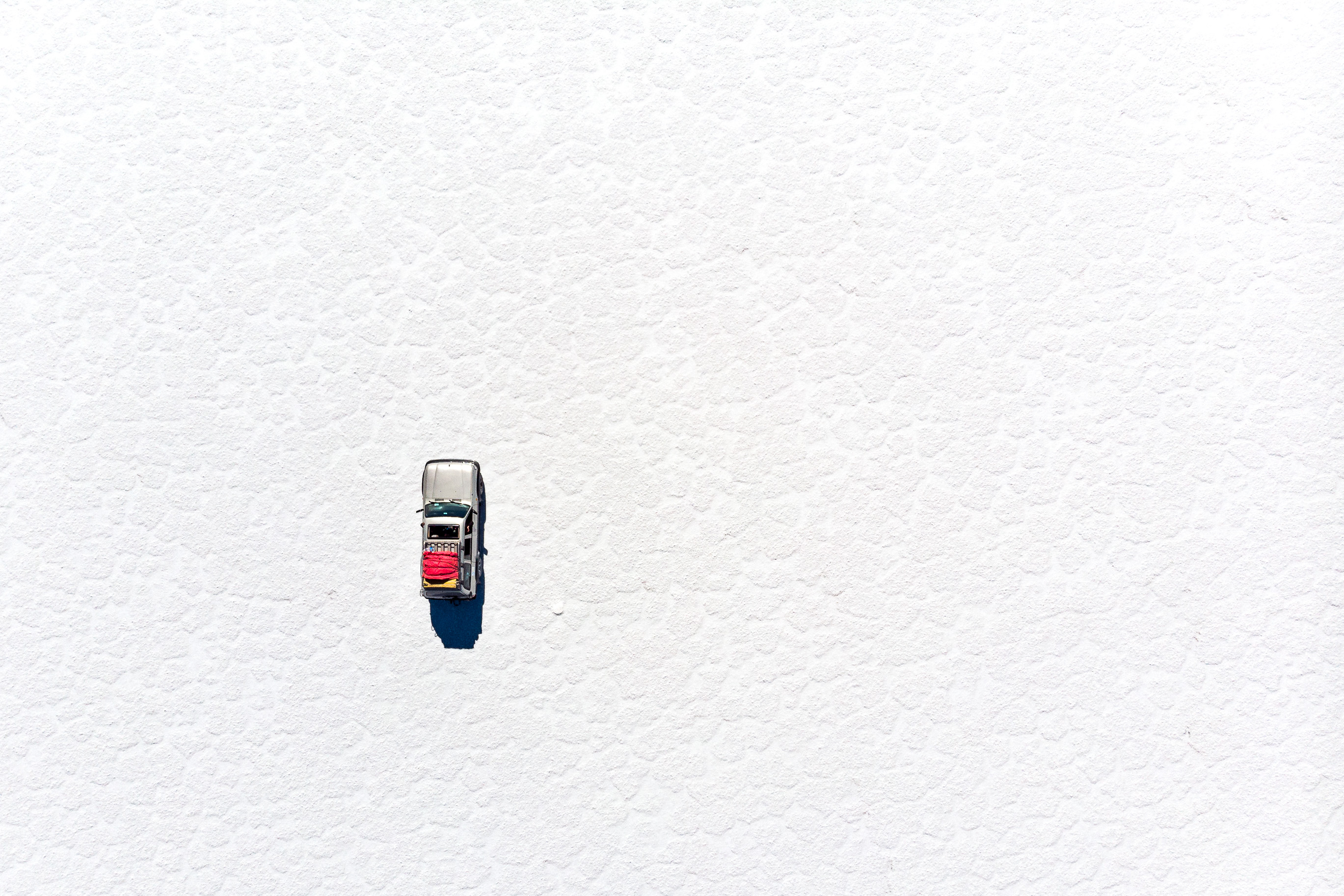 Vanuit de lucht zie je de prachtige zoutpatronen op de zoutvlakte van Salar de Uyuni in Bolivia.