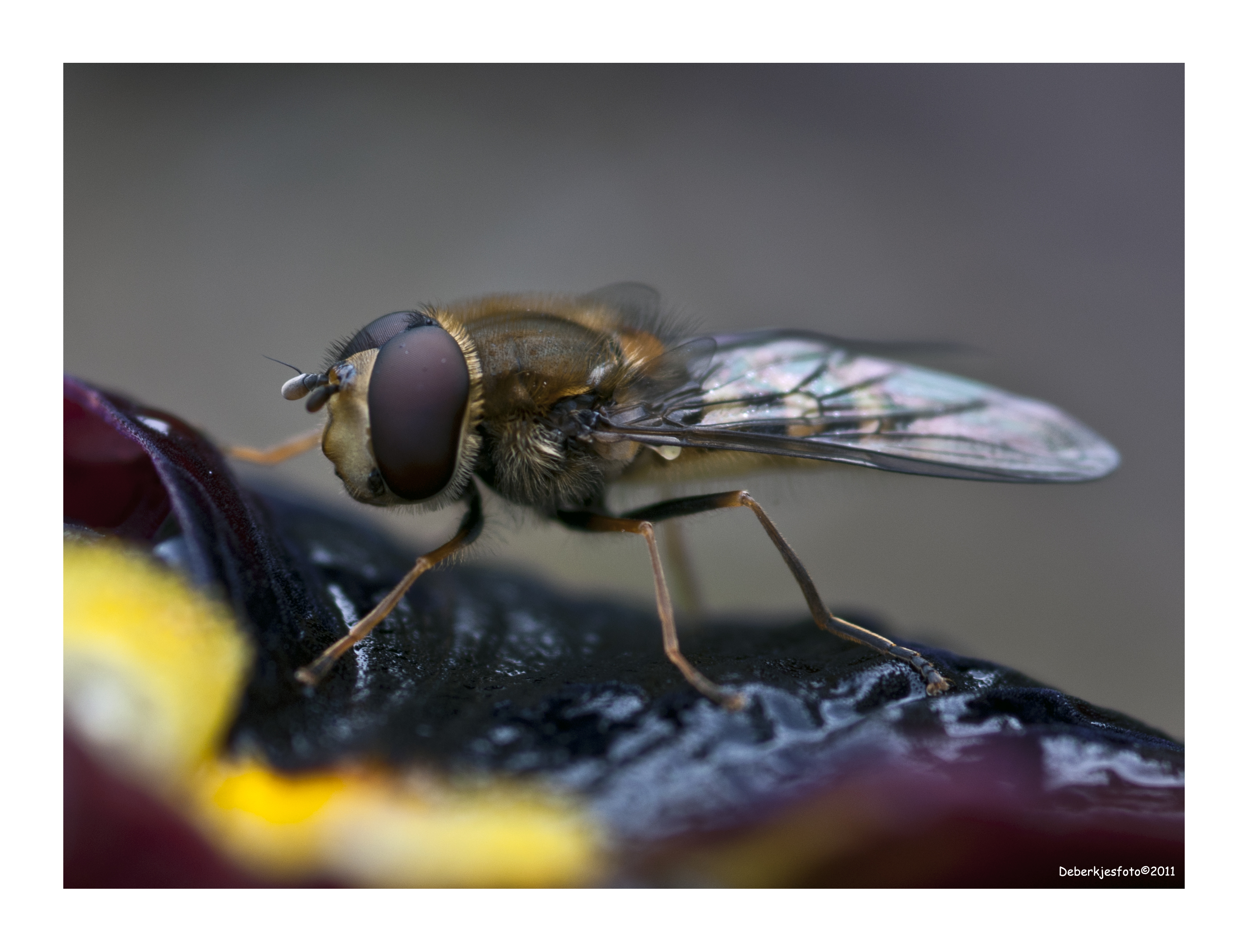 zweefvlieg op viooltje